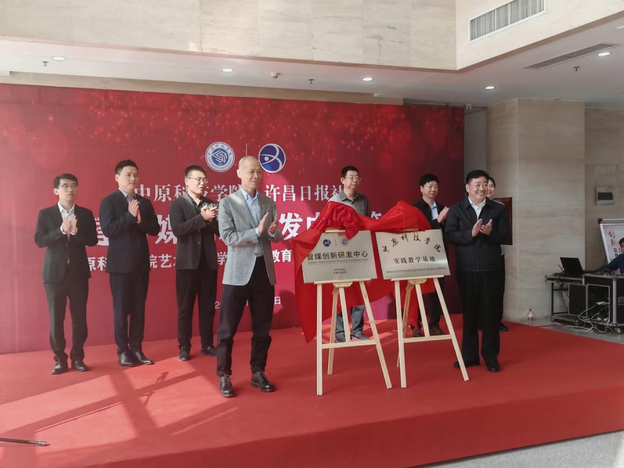 10月11日,中原科技学院与许昌日报社举行共建智媒创新研发中心签约暨中原科技学院艺术设计学院校外教育教学实践基地揭牌仪式。许昌日报社党委书记、社长李珂,党委副书记、副总编辑黄延伟,党委副书记李春霞,党委委员、副总编辑刘俊民,中原科技学院艺术学院院长曹阳,校地合作处副处长朱伟及教师、学生代表参加,仪式由许昌日报党委副书记、总编辑邓雷主持。