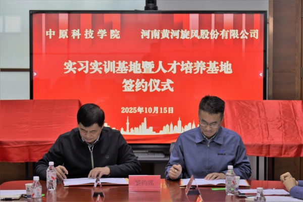 为进一步深化产教融合、校企协同育人工作,助力我校培养适应产业发展需求的应用型人才,10月15日,中原科技学院赴河南黄河旋风股份有限公司(以下简称“黄河旋风”)举行实习实训基地及人才培养基地签约暨揭牌仪式。中原科技学院副校长杨新新,副校长赵俊伟,机电工程学院领导及相关职能部门负责人参加本次活动。黄河旋风总经理庞文龙,总工程师王裕昌及企业相关部门负责人共同参与仪式。