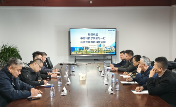 仪式上,赵龙对杨新新一行的到来表示热烈欢迎,介绍了东软的产业发展布局,以及东软教育在产教融合领域积累的深厚经验与资源。他表示,东软教育依托东软雄厚的产业背景与学历教育积淀,致力于为高校提供与产业动态对接的教学资源,助力建设“双师型”教师队伍,并推动校企协同开展技术创新与成果转化。赵龙强调,东软教育高度重视与中原科技学院的合作,将结合学校办学定位与区域产业发展需求,在共建高水平数字产业学院、合作开发课程与实践项目、加强师资交流与能力提升等方面深化合作,共同培养符合新时代要求的高素质应用型人才。